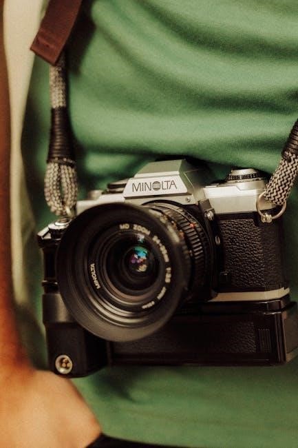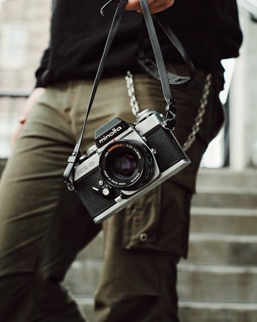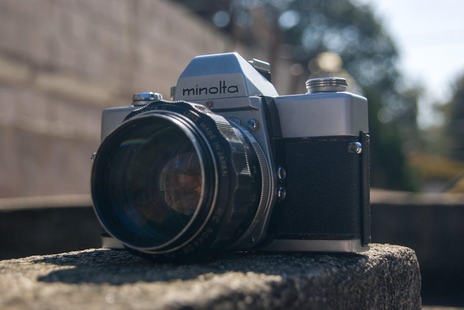 The camera features a single-stroke film advance lever, offering smooth and reliable film transport․ Manuals explain the proper technique for advancing the film and resetting the frame counter․ Troubleshooting sections address common issues like film jamming or incorrect frame counting․ Understanding the mechanics, as described in the documentation, ensures consistent and trouble-free film handling․